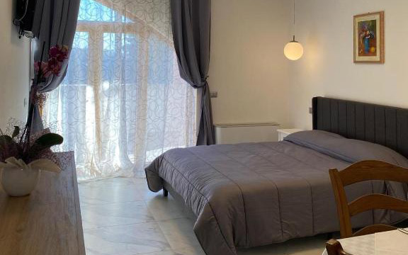 Ampia e confortevole, la camera offre insonorizzazione, TV a schermo piatto, macchina per il caffè e bagno privato con bidet, doccia e set di cortesia. Climatizzata, è arricchita da un terrazzo panoramico, perfetto per momenti di relax. Animali non ammessi.